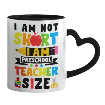 I Am Not Short I Am Preschool Teacher Size, Mug heart black handle, ceramic, 330ml