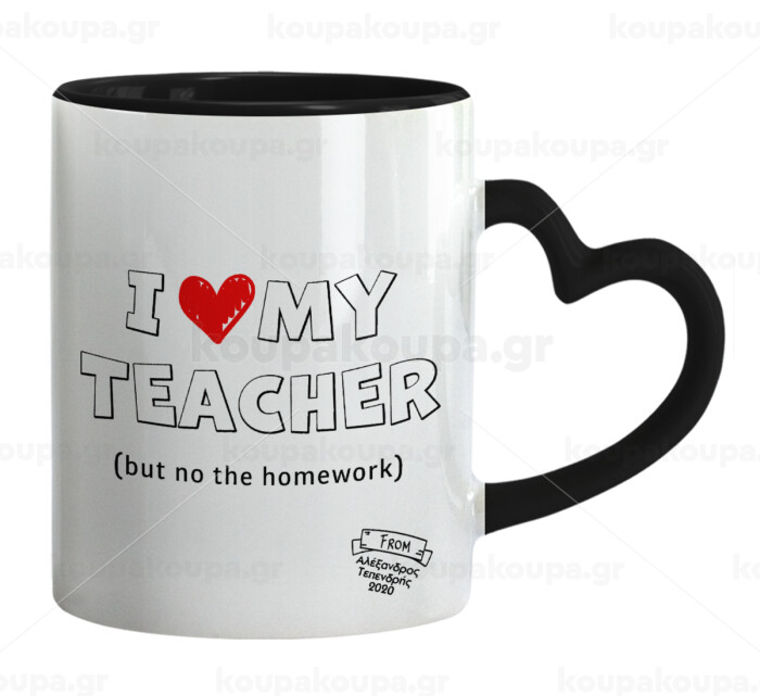 i love my teacher but no the homework outline, Mug heart black handle, ceramic, 330ml