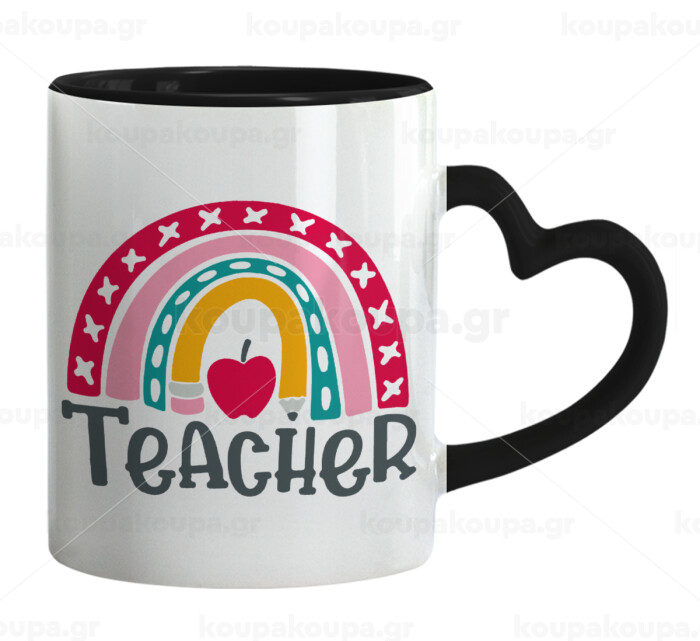 Rainbow teacher, Mug heart black handle, ceramic, 330ml