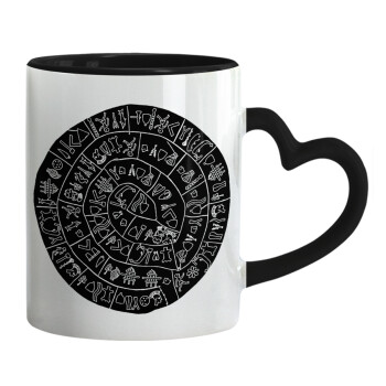 Δίσκος Φαιστού, Mug heart black handle, ceramic, 330ml