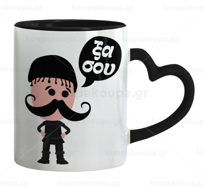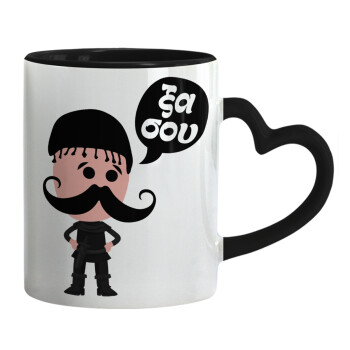Κρητικός "Ξα σου", Mug heart black handle, ceramic, 330ml