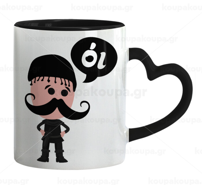 Κρητικός "Οι", Mug heart black handle, ceramic, 330ml