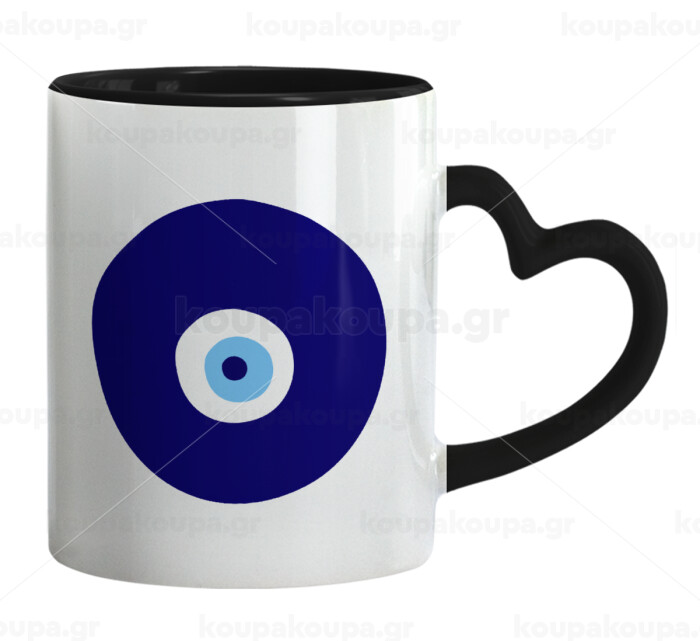 Χάντρα γαλαζιά, Mug heart black handle, ceramic, 330ml