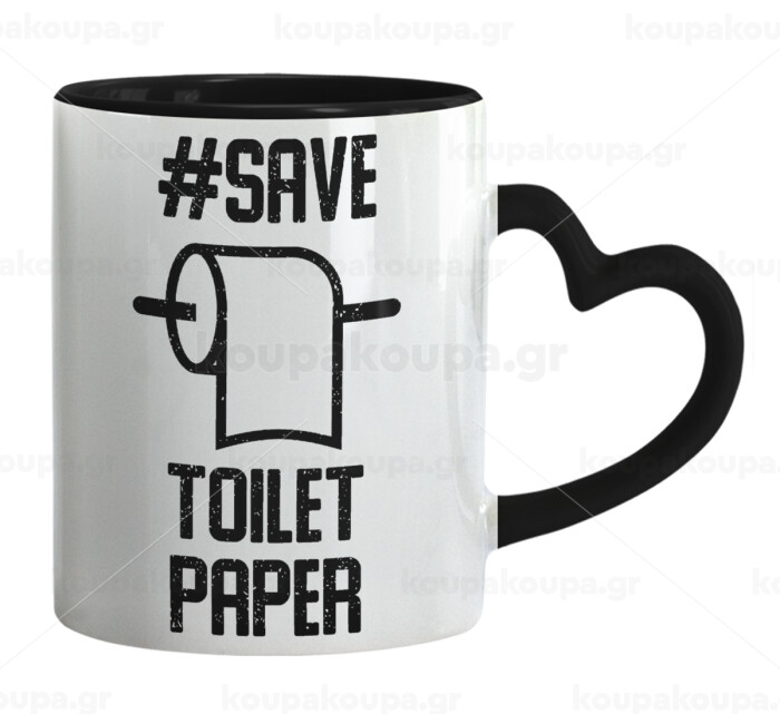 Save toilet Paper, Mug heart black handle, ceramic, 330ml