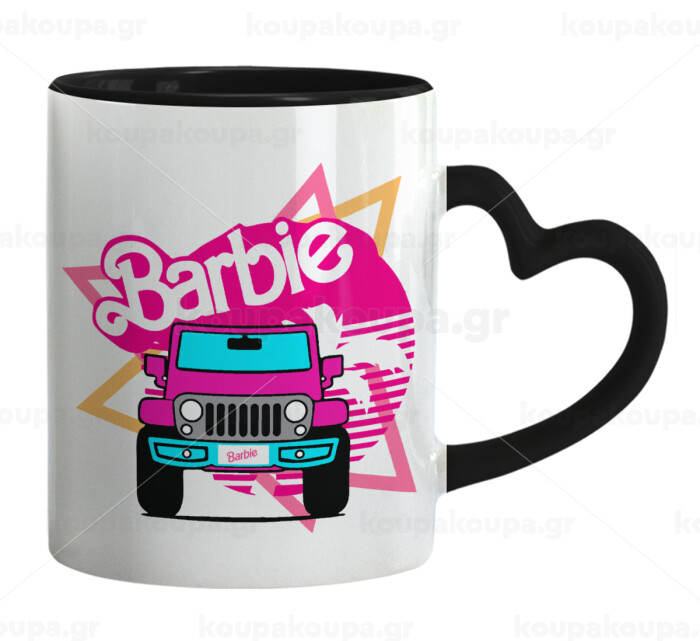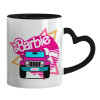 Barbie car, Mug heart black handle, ceramic, 330ml