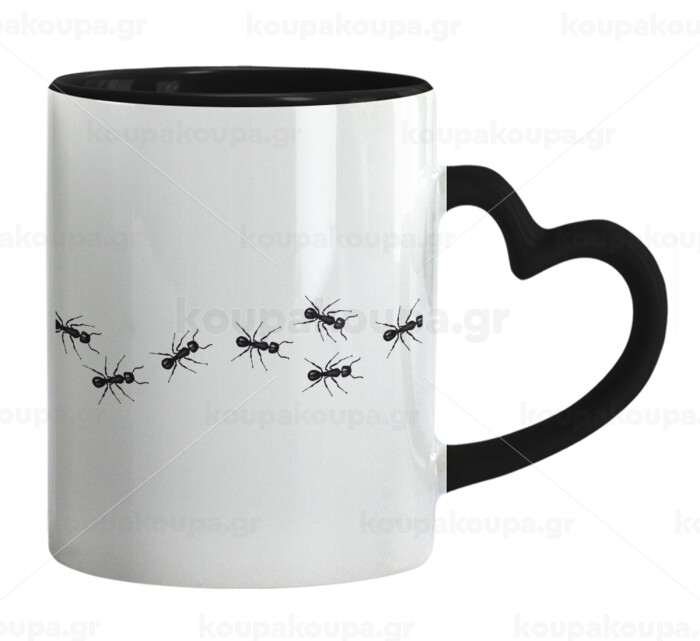 A glossy, high-quality mug with a heart-shaped handle and vibrant colors. Dishwasher safe and suitable for microwave use. Use it for hot and cold drinks.