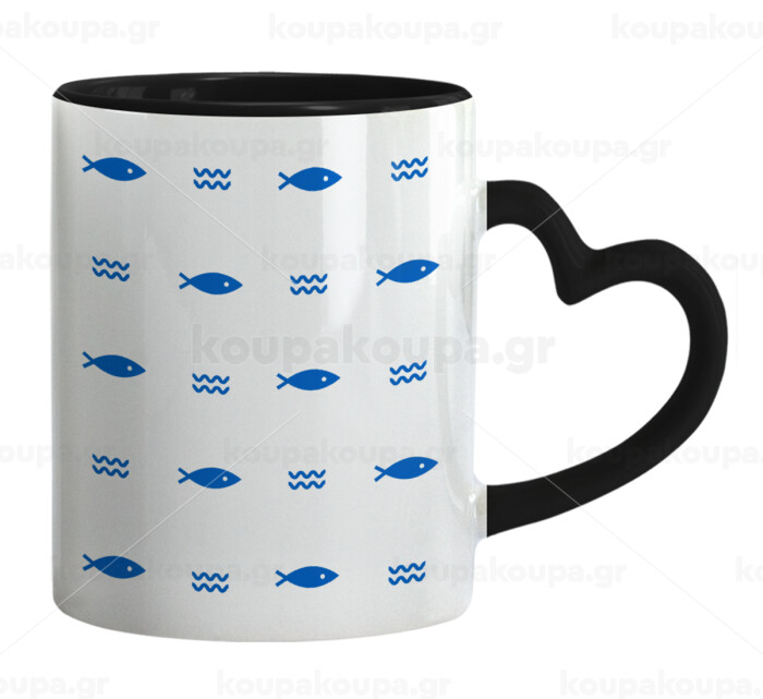A glossy, high-quality mug with a heart-shaped handle and vibrant colors. Dishwasher safe and suitable for microwave use. Use it for hot and cold drinks.