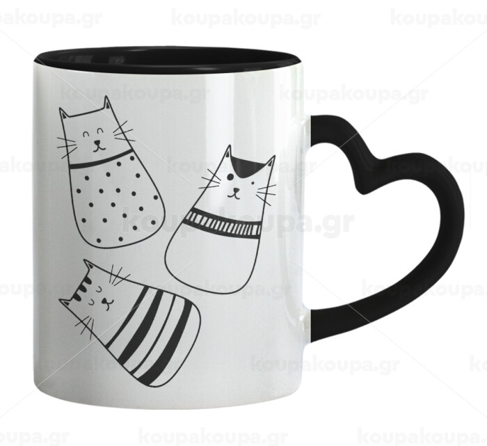 Cute cats, Mug heart black handle, ceramic, 330ml
