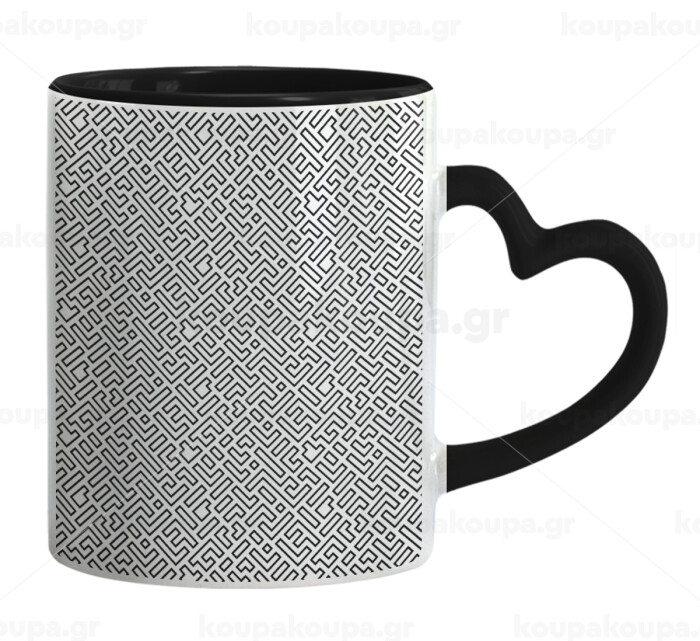 Doodle Maze, Mug heart black handle, ceramic, 330ml