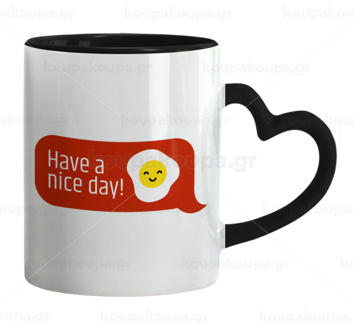 Have a nice day Emoji, Mug heart black handle, ceramic, 330ml