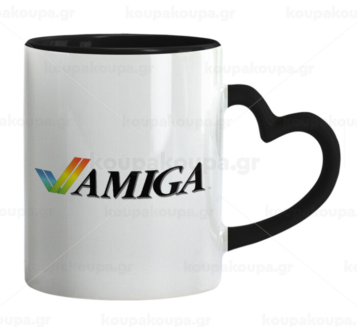 A glossy, high-quality mug with a heart-shaped handle and vibrant colors. Dishwasher safe and suitable for microwave use. Use it for hot and cold drinks.