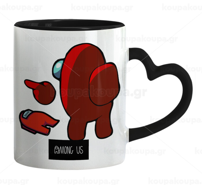 Among US i am impostor..., Mug heart black handle, ceramic, 330ml