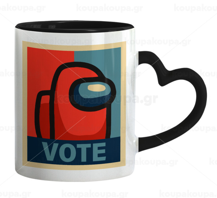 Among US VOTE, Mug heart black handle, ceramic, 330ml