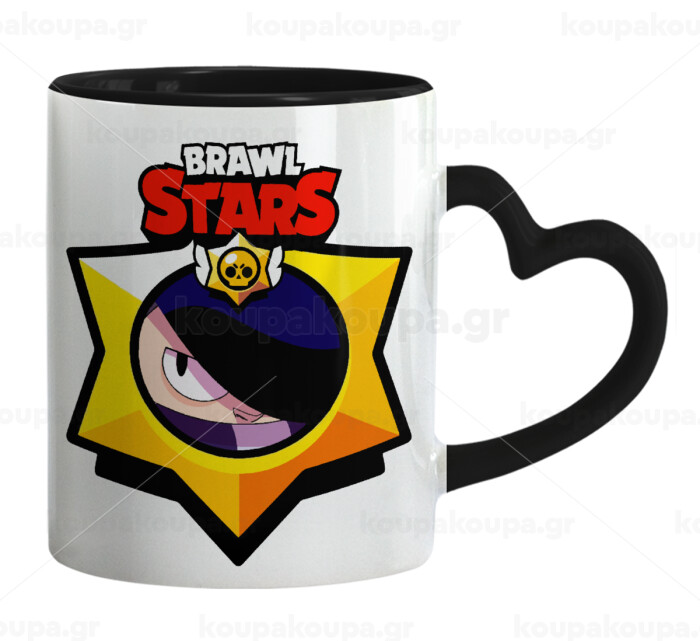 Brawl Stars Edgar, Mug heart black handle, ceramic, 330ml