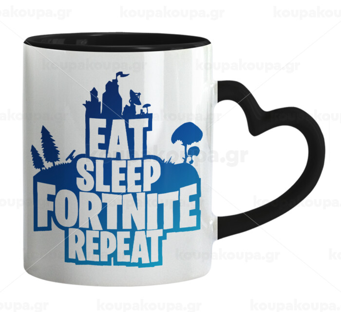 Eat Sleep Fortnite Repeat, Mug heart black handle, ceramic, 330ml