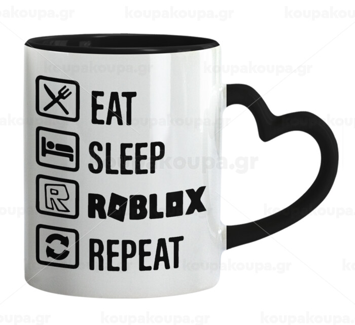 Eat, Sleep, Roblox, Repeat, Mug heart black handle, ceramic, 330ml