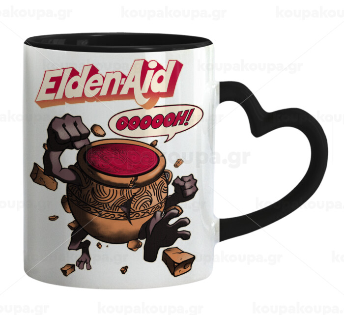 Elden-Aid, Elden Ring inspired , Mug heart black handle, ceramic, 330ml