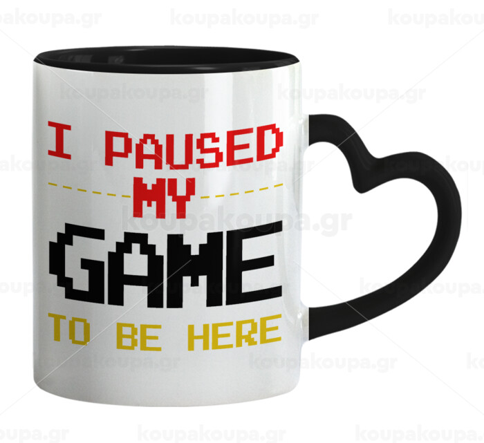 I paused my game to be here, Mug heart black handle, ceramic, 330ml