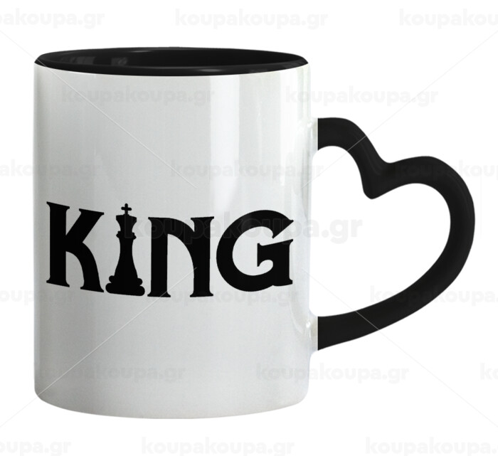 King chess, Mug heart black handle, ceramic, 330ml