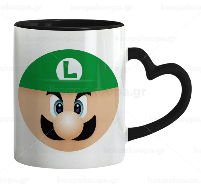 Luigi flat, Mug heart black handle, ceramic, 330ml