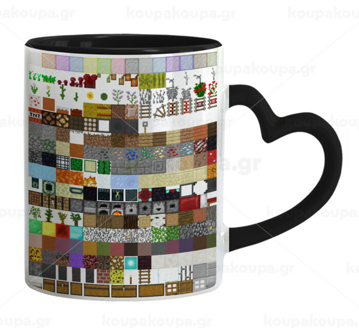 Minecraft blocks, Mug heart black handle, ceramic, 330ml