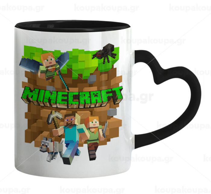 Minecraft characters, Mug heart black handle, ceramic, 330ml