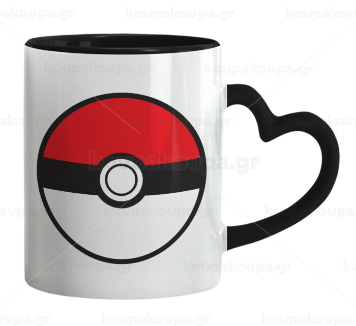 Pokemon ball, Mug heart black handle, ceramic, 330ml