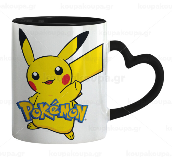 Pokemon pikachu, Mug heart black handle, ceramic, 330ml