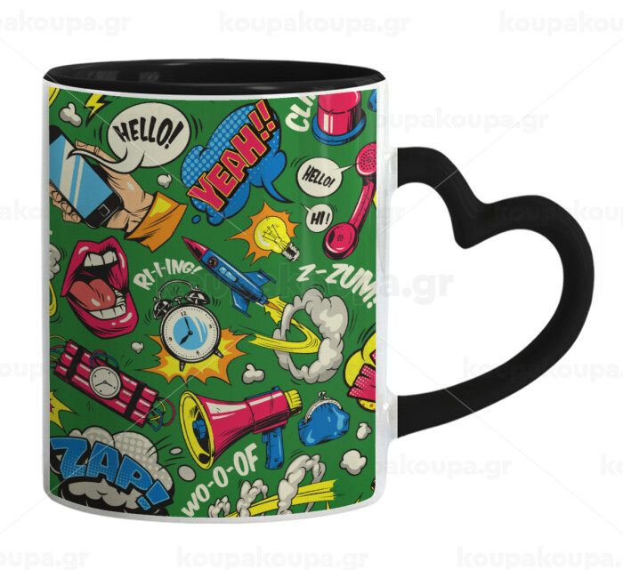 Pop art colorful seamless, Mug heart black handle, ceramic, 330ml