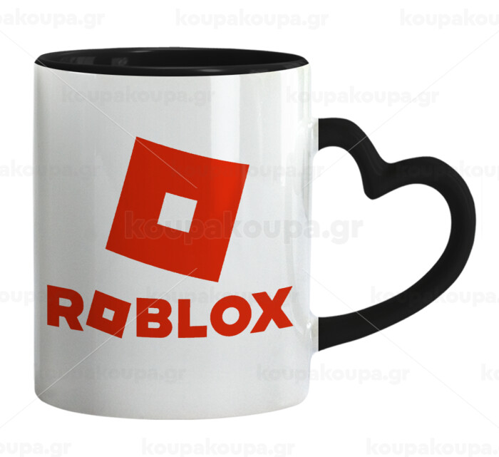 Roblox red, Mug heart black handle, ceramic, 330ml