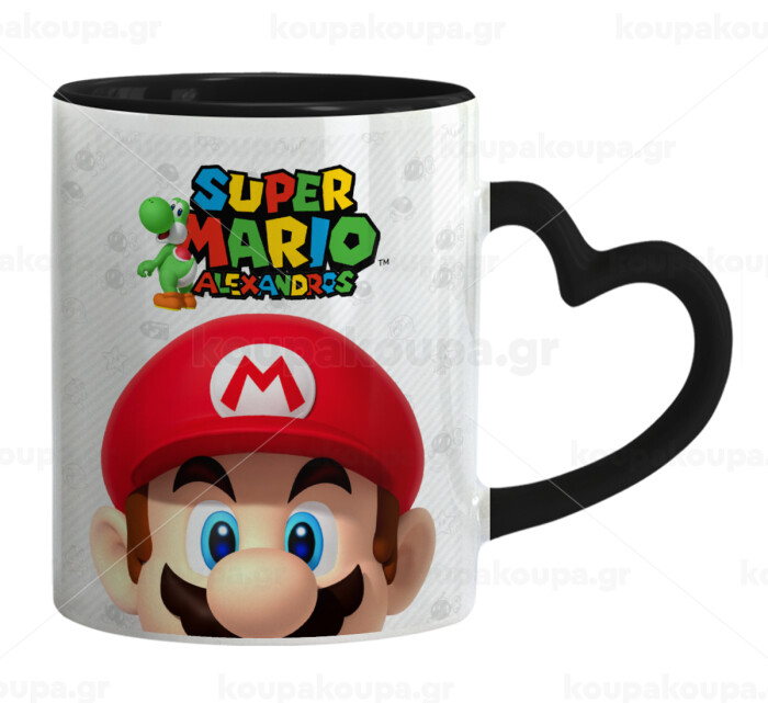 Super mario head, Mug heart black handle, ceramic, 330ml