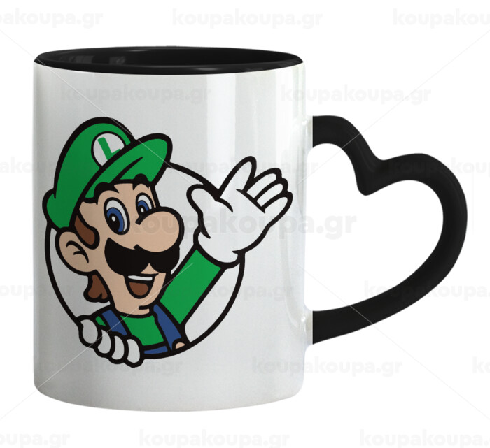 Super mario Luigi win, Mug heart black handle, ceramic, 330ml