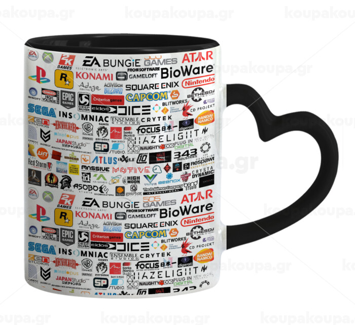 Video Game Studio Logos, Mug heart black handle, ceramic, 330ml
