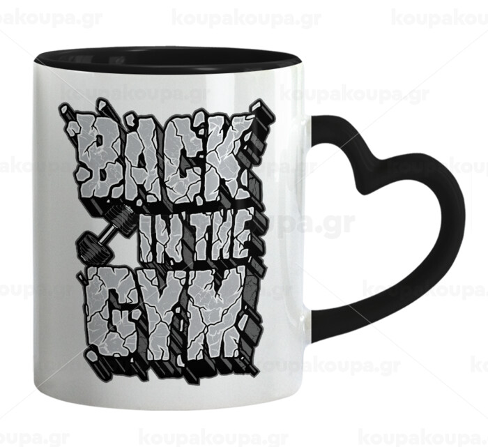 Back in the GYM, Mug heart black handle, ceramic, 330ml