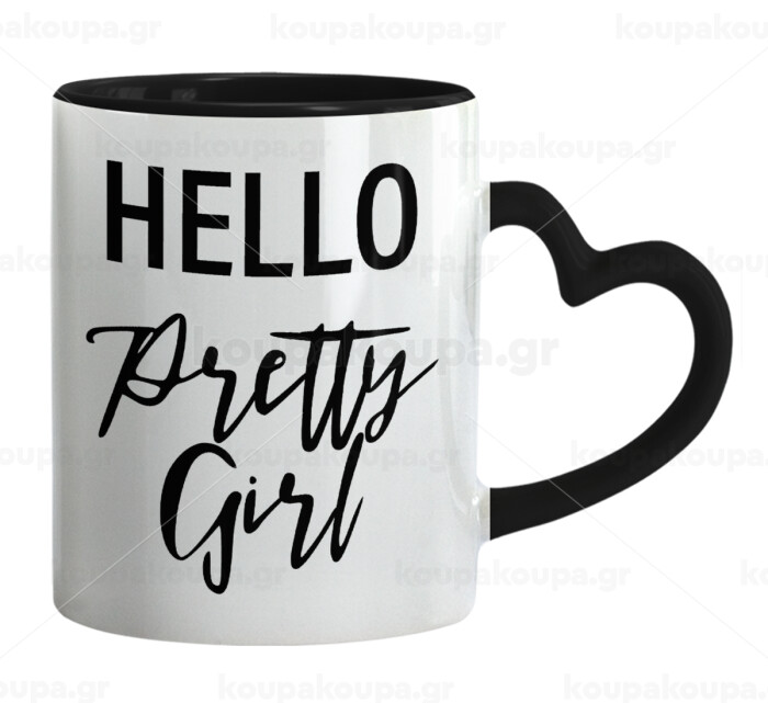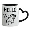 Hello pretty girl, Mug heart black handle, ceramic, 330ml