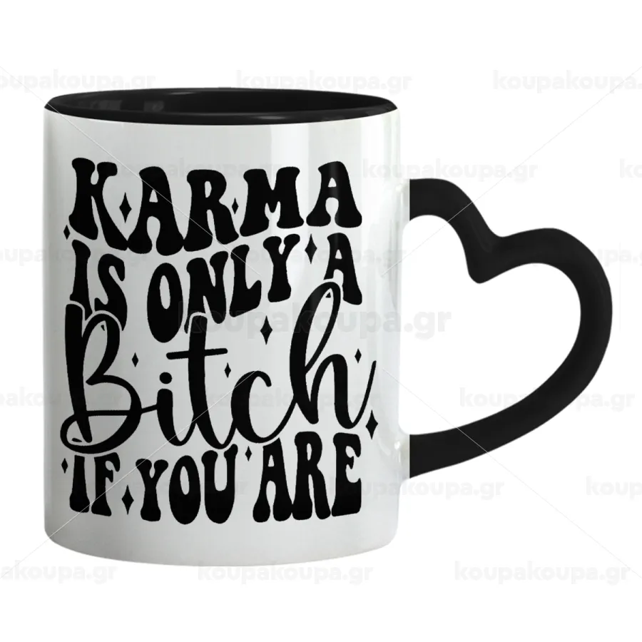 Karma is Only A Bitch if You Are, Mug heart black handle, ceramic, 330ml