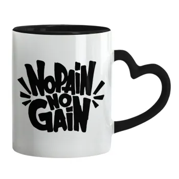 No pain no gain, Mug heart black handle, ceramic, 330ml