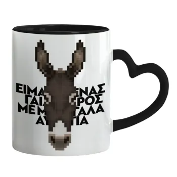 Είμαι ένας γάιδαρος με μεγάλα αυτιά., Mug heart black handle, ceramic, 330ml