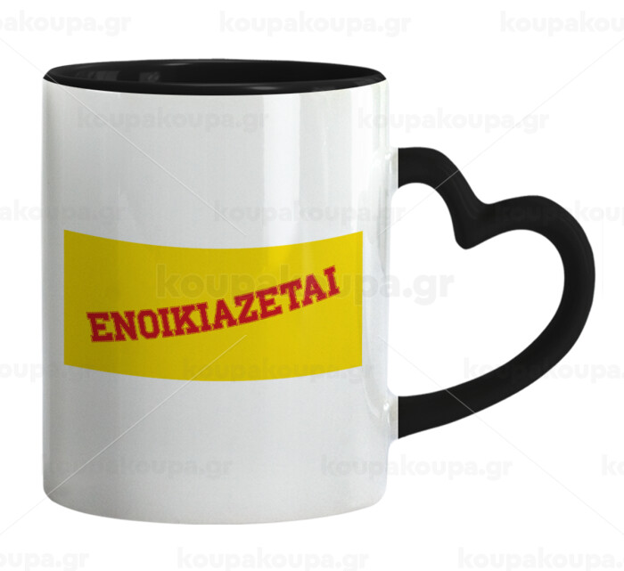 ΕΝΟΙΚΙΑΖΕΤΑΙ, Mug heart black handle, ceramic, 330ml