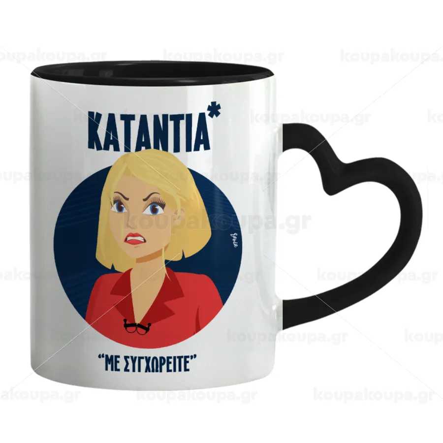Κατάντια, με συγχωρείτε, Mug heart black handle, ceramic, 330ml