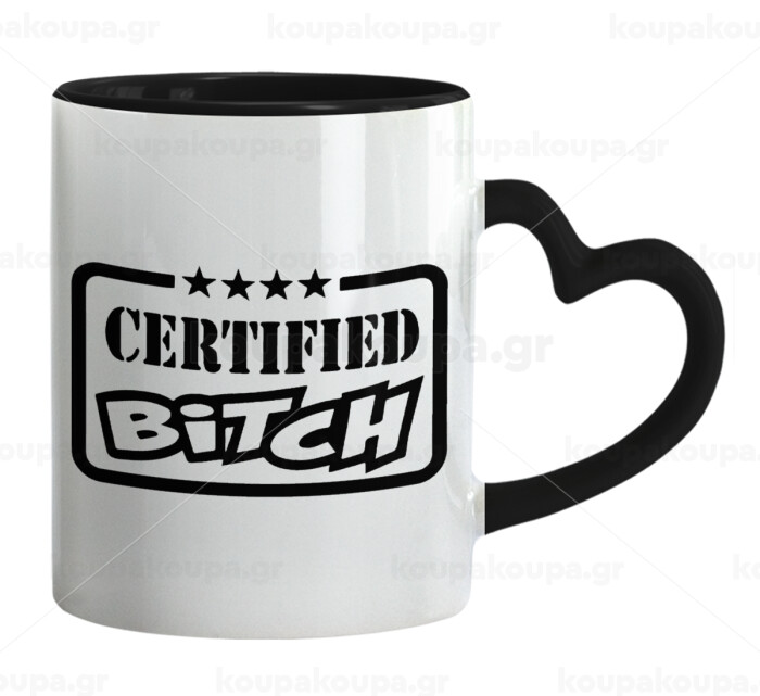 Certified Bitch, Mug heart black handle, ceramic, 330ml