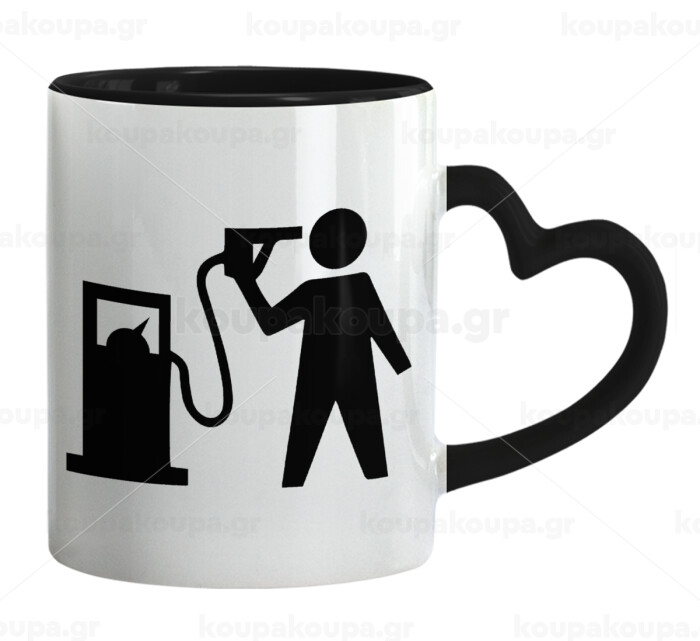 Fuel crisis, Mug heart black handle, ceramic, 330ml