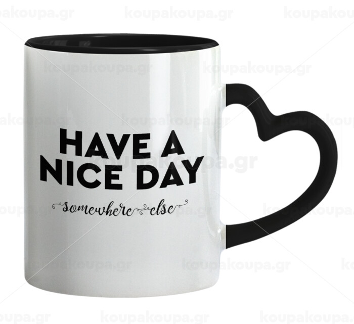 Have a nice day somewhere else, Mug heart black handle, ceramic, 330ml