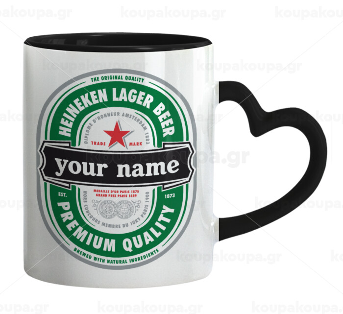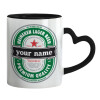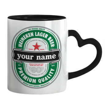 Heineken with name, Mug heart black handle, ceramic, 330ml