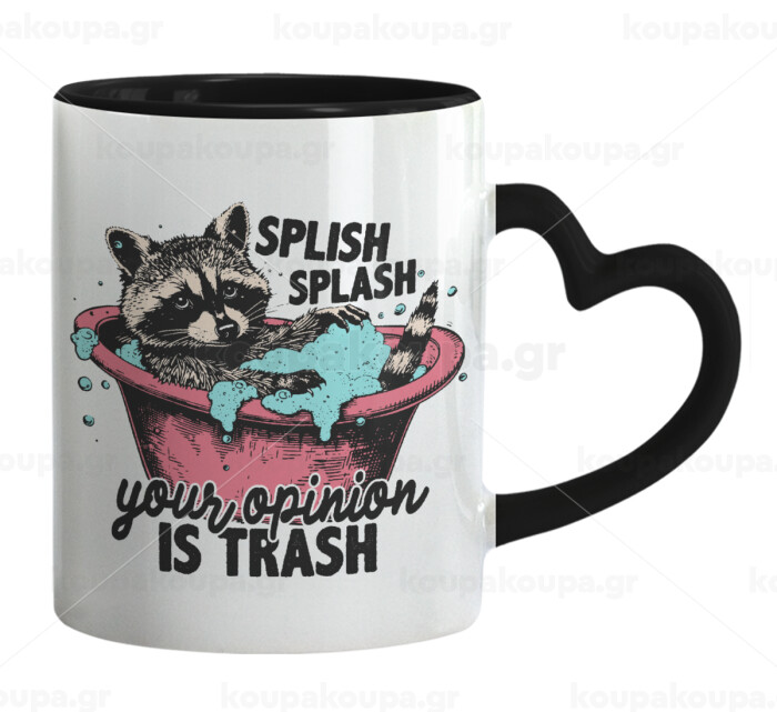 Splish splash your opinion is trash, Mug heart black handle, ceramic, 330ml