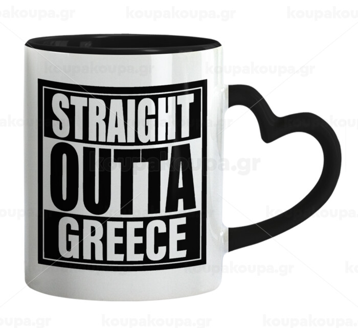 Straight Outta greece, Mug heart black handle, ceramic, 330ml