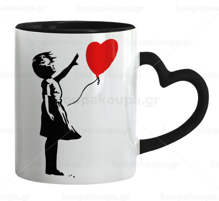 Banksy (Hope), Mug heart black handle, ceramic, 330ml