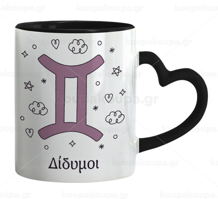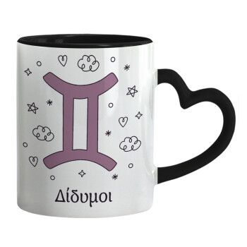 Ζώδια Δίδυμοι, Mug heart black handle, ceramic, 330ml