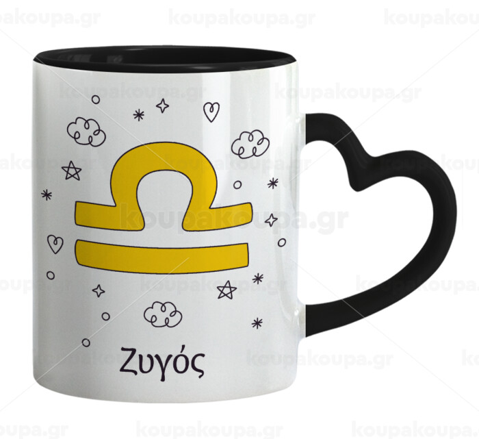 Ζώδια Ζυγός, Mug heart black handle, ceramic, 330ml