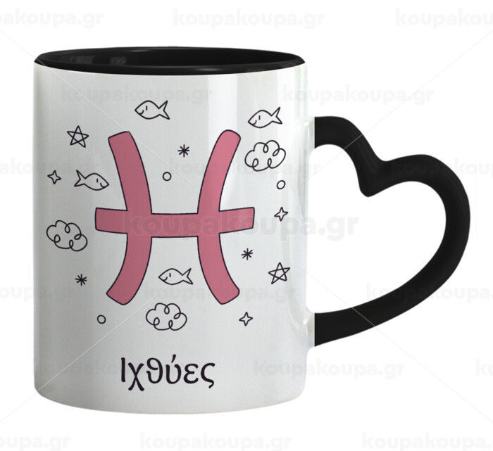 Ζώδια Ιχθύες, Mug heart black handle, ceramic, 330ml